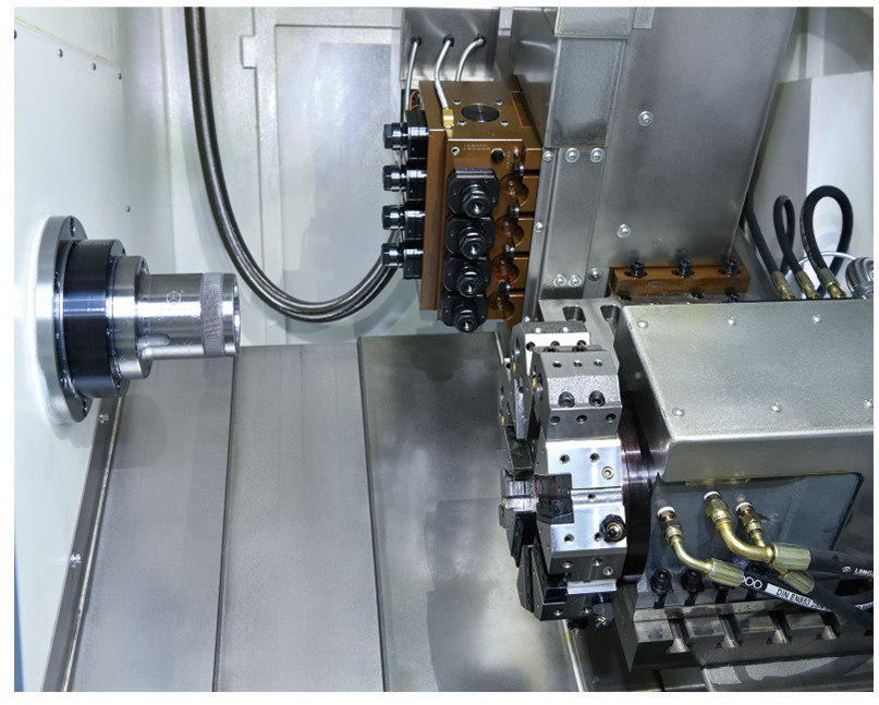 采用台湾原装液压或伺服8工位刀塔,换刀速度快,寿命长,精度高。